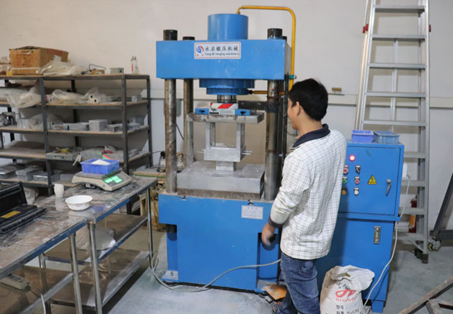 干壓成型又稱之為模壓成型,是陶瓷成型常用的一種方法,通過將陶瓷粉體裝入金屬模具中再施加壓力,壓力大約為160噸,經過摩擦力將粉體顆粒之間固定形成各種形狀,一般適用于成型陶瓷板、陶瓷圓盤等產品。這種成型方式操作簡單方便,產品生產效率高,需要人工少,可通過自動化設備來實現流水作業,但是缺點是這種方式成型的陶瓷密度分布不均,無法適用大型坯件制造且對模具磨損較大。